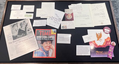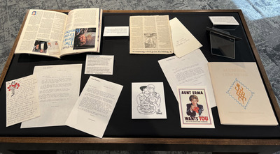 Erma Bombeck (1927–1996) was a trailblazing humor writer who lived both inside and outside of the world she wrote about. This collection contains images of the gallery and object cases in the exhibit Beyond the Byline: Erma Bombeck's Story, which ran from Feb. 1 through June 15, 2024, in the University of Dayton Roesch Library.