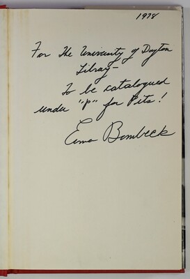 "For the University of Dayton Library — To be catalogued under 'P' for Pits!"