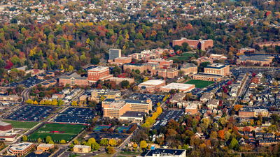 Background Image: Aerial View of Campus Facing East from above Brown Street