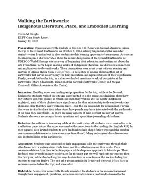 This essay examines a place-based experiential learning trip to the Newark Earthworks that integrates Indigenous literature, guided immersion, student reflection, and assessment using the PIRA framework.